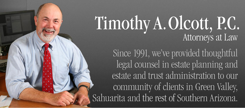 The law office of Timothy A. Olcott, P.C. is located in Green Valley's Madera Plaza, Suite 140. The address is 516 East Whitehouse Canyon Road. That's just east of Old Nogales Highway. More